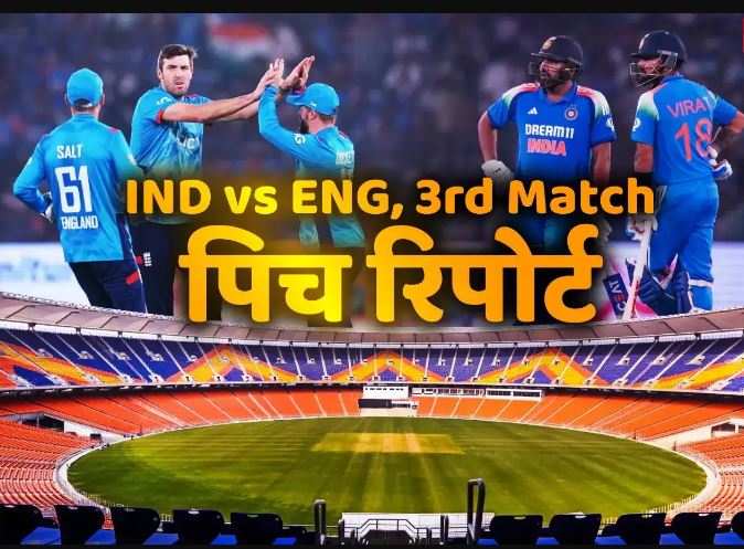 क्रिकेट न्यूज़ डेस्क। भारत और इंग्लैंड के बीच तीसरा वनडे मैच अहमदाबाद के नरेंद्र मोदी स्टेडियम में खेला जाएगा। टीम इंडिया ने तीन मैचों की सीरीज में 2-0 की अजेय बढ़त ले रखी है। ऐसे में भारत की निगाहें इंग्लैंड का सूपड़ा साफ करने पर रहने वाली हैं। मुकाबले से पहले हम यहां गौर कर रहे हैं कि अहमदाबाद के नरेंद्र मोदी स्टेडियम में कैसे पिच मिल सकती है ? अहमदाबाद के नरेंद्र मोदी स्टेडियम में जमकर चौके-चौकों की बरसात होती है।