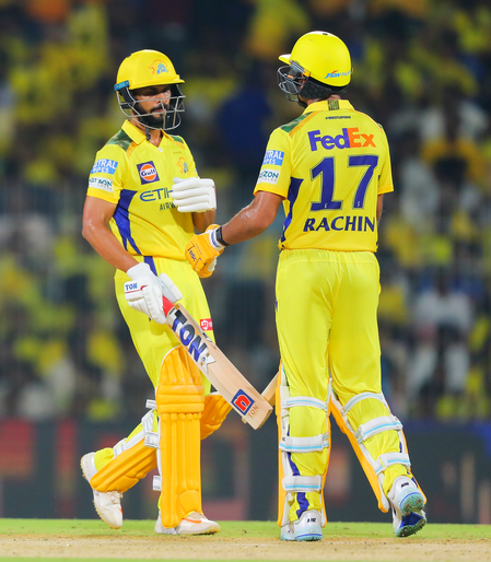 रचिन ने 45 गेंदों पर 65 रनों की शानदार पारी खेली। रचिन ने दो चौके और चार छक्के जड़े। पारी के दौरान उनका 144.44 का स्ट्राइक रेट रहा। सलामी बल्लेबाज रचिन के अलावा चेन्नई के लिए कप्तान ऋतुराज गायकवाड ने कप्तानी पारी खेली। उन्होंने महज 26 गेंदों में तूफानी 53 रनों की पारी खेली। पारी के दौरान 6 चौके और तीन छक्के भी जड़े।