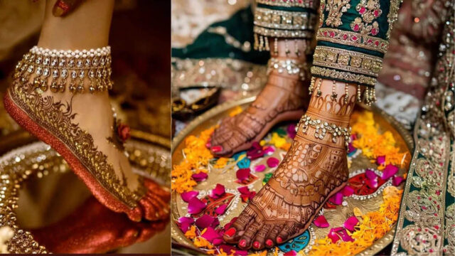 जब तक पायल में घुंघराले बाल न हों, पहनने में मज़ा नहीं आता। अगर आप भी खूबसूरत पायल डिज़ाइन की तलाश में हैं, तो यह डिज़ाइन आपके लिए सबसे अच्छा साबित हो सकता है। साथ ही, पैरों की मेहँदी और ऊपर की पायल भी बेहद खूबसूरत लगती हैं।