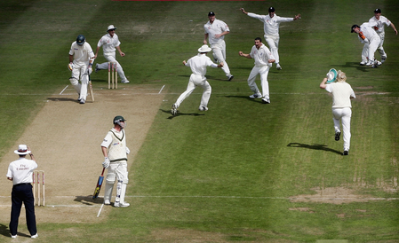 2005 में 5 टेस्ट मैचों की सीरीज के लिए रिकी पोंटिंग की कप्तानी वाली ऑस्ट्रेलिया इंग्लैंड पहुंची। माइकल वॉन की कप्तानी वाली इंग्लैंड अपनी धरती पर एशेज का खिताब वापस पाने को व्यग्र थी। लेकिन लॉर्ड्स में खेले गए पहले टेस्ट में ऑस्ट्रेलिया ने 239 रन से जीत हासिल की। इस हार के बाद एक बार फिर इंग्लैंड पर सीरीज गंवाने का खतरा मंडराने लगा।