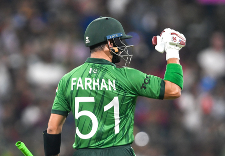 56 पर 2 विकेट गंवा चुकी पाकिस्तान को साहिबजादा फरहान और बाबर आजम ने संभाला। दोनों ने तीसरे विकेट के लिए 81 रन की साझेदारी कर स्कोर को 137 तक पहुंचाया। इस स्कोर पर बाबर आजम 32 गेंद पर 4 चौके और 1 छक्के की मदद से 46 रन बनाकर आउट हुए। फरहान चौथे विकेट के रूप में 143 के स्कोर पर आउट हुए। फरहान ने 41 गेंद पर 5 छक्कों और 6 चौकों की मदद से 73 रन की पारी खेली।