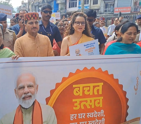 मंडी, 22 सितंबर (आईएएनएस)। जीएसटी 2.0 के तहत नेक्स्ट जेन सुधार सोमवार से लागू हो चुके हैं। इसे सरकार बचत उत्सव के रूप में मना रही है। इसी के प्रचार के लिए सांसद और अभिनेत्री कंगना रनौत मंडी पहुंचीं। यहां पर उन्होंने बचत उत्सव रैली में हिस्सा लिया और यहां के दुकानदारों को इस बारे में जागरूक करते हुए, आम जनता को इसका लाभ देने का आग्रह किया।