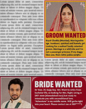 वहीं, दूसरी ओर प्रतीक गांधी की तस्वीर के नीचे लिखा है, “दुल्हन चाहिए। डॉ. वीर, उम्र 29 वर्ष, गुज्जू बॉय (गुजरात में रहने वाले लोगों को गुज्जू बॉय कहते हैं)। पशु चिकित्सक। कुंवारे जीवन से रिटायर होना चाहता हूं इसलिए सही महिला की तलाश है। ड्राई राज्य (अहमदाबाद रॉक्स) में रहता हूं, लेकिन आपको हर हाल में प्यार करने के लिए तैयार हूं। एडवेंचर मेरा मध्य नाम है। आपके दिल में गरबा करूंगा। कृपया मुझसे 989*****2 नंबर पर संपर्क करें।”