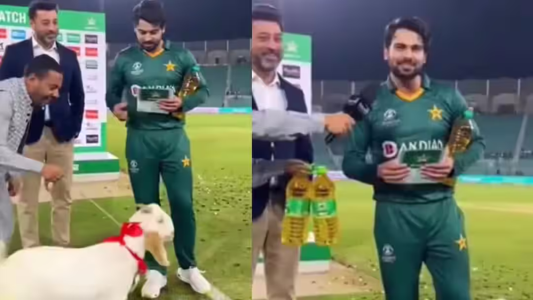 पिछले कुछ सालों में पाकिस्तान क्रिकेट टीम का स्टैंडर्ड बहुत गिर गया है। इस वजह से, पाकिस्तानी खिलाड़ियों और टीम को टारगेट करने वाले ट्रोल्स की कोई कमी नहीं है। आमतौर पर क्रिकेट में प्लेयर ऑफ़ द मैच को एक चमकदार ट्रॉफी और लाखों रुपये का इनाम मिलता है। लेकिन क्या आप यकीन करेंगे अगर किसी पाकिस्तानी खिलाड़ी को “मैन ऑफ़ द मैच” बनने पर एक बकरा और दो भारी तेल की बोतलें मिलें? ऐसा ही एक वीडियो सोशल मीडिया पर वायरल हो रहा है, लेकिन इसके पीछे का सच क्या है?