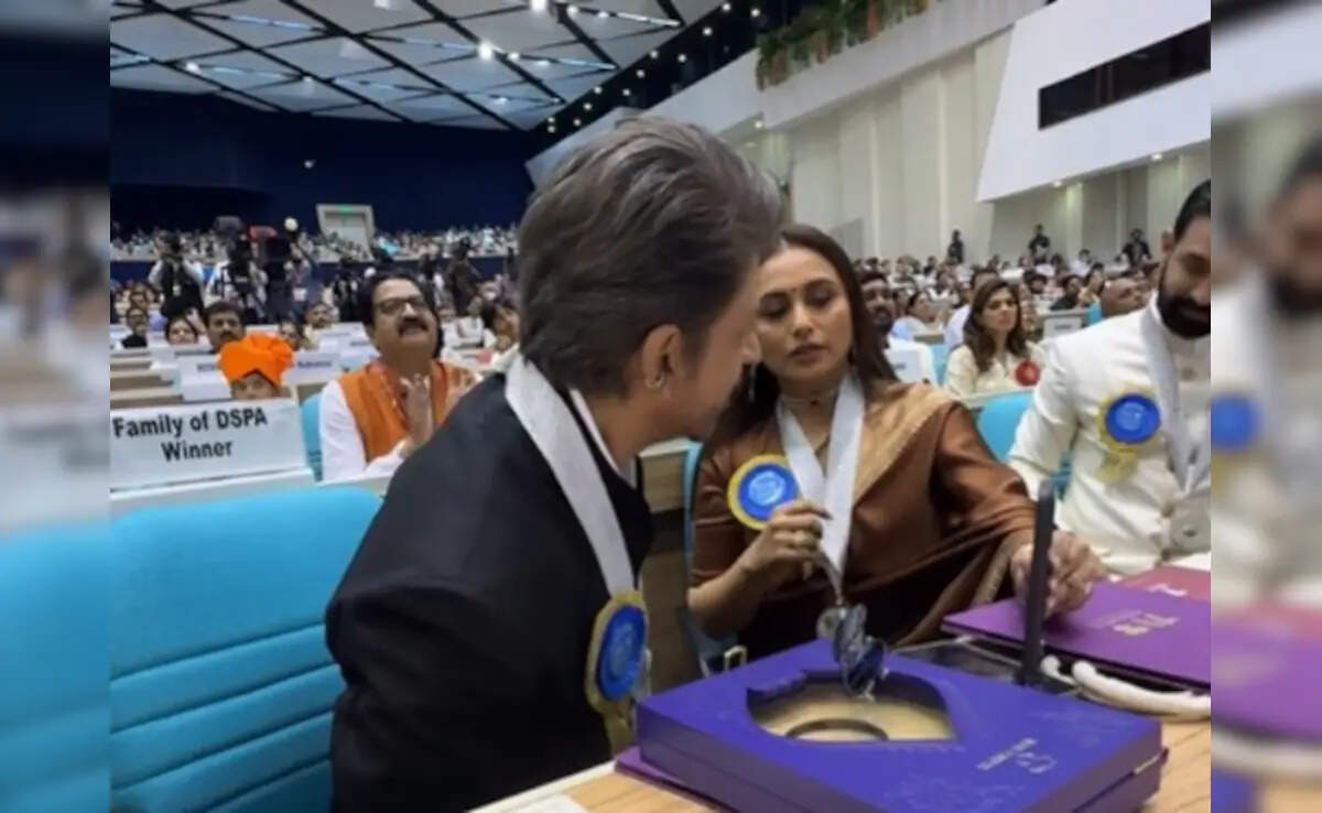 71वें नेशनल फिल्म अवॉर्ड्स शाहरुख खान और रानी मुखर्जी के लिए यादगार पल बन गया। 23 सितंबर को दिल्ली में राष्ट्रपति द्रौपदी मुर्मू ने इन दोनों को अवॉर्ड देकर सम्मानित किया। इस शाम की खासियत जहां जश्न थी, वहीं इन दोनों स्टार्स का एक मज़ेदार पल अब वायरल हो गया है।
