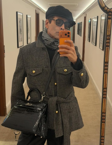 करण ने इंस्टाग्राम पर कई मिरर सेल्फी पोस्ट कीं। इनमें वे स्टाइलिश लुक में नजर आ रहे हैं। एक तस्वीर में उन्होंने गोल्ड बटन वाली ग्रे स्ट्रक्चर्ड जैकेट पहनी है, जिसे ब्लैक ट्राउजर और लेदर बैग के साथ जोड़ा गया है। दूसरी तस्वीर में वे फर कोट, टिंटेड चश्मे और हैट के साथ दिखे। एक और क्लिक में पिंक ओवरकोट में लिफ्ट के अंदर क्लासी पोज दिया, जबकि एक में क्रीम कलर का डबल-ब्रेस्टेड कोट और ओवरसाइज्ड सनग्लासेस में स्टाइलिश अंदाज अपनाया।