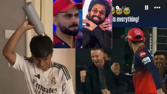 सोनू सूद, रश्मिका मंदाना और रणवीर सिंह जैसे सितारों ने विराट कोहली को बधाई दी है। इतना ही नहीं ‘पुष्पराज’ यानी अल्लू अर्जुन के बेटे ने ऐसा रिएक्शन दिया कि फैन्स खुश हो गए। 18 साल के इंतजार के बाद विराट कोहली ने आईपीएल में जीत का स्वाद चखा है और यह काफी भावुक पल था।