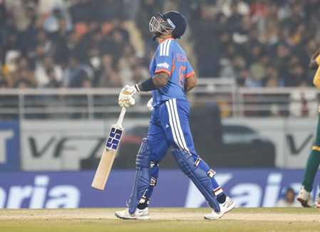 सूर्यकुमार यादव इस मुकाबले में सिर्फ 5 ही रन बना सके, जबकि शुभमन गिल अपनी पहली ही गेंद पर लुंगी एनगिडी को विकेट दे बैठे। इस पारी में अभिषेक शर्मा ने 8 गेंदों में 2 छक्कों के साथ 17 रन बनाए।