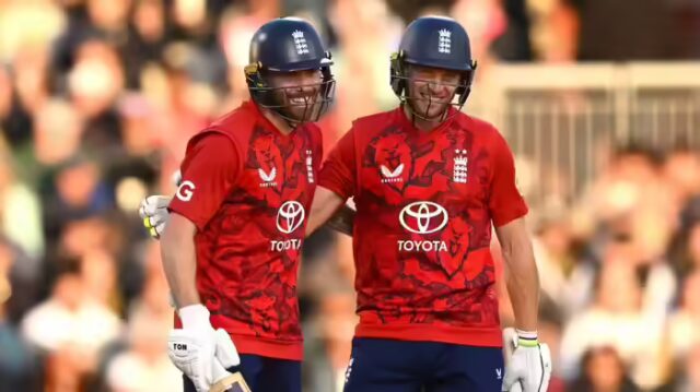 मैच में, जोस बटलर और फिल साल्ट ने शतकीय साझेदारी की। टी20 में दोनों के बीच यह चौथी शतकीय साझेदारी थी। यह इस प्रारूप में संयुक्त रूप से दूसरी सबसे बड़ी शतकीय साझेदारी है।