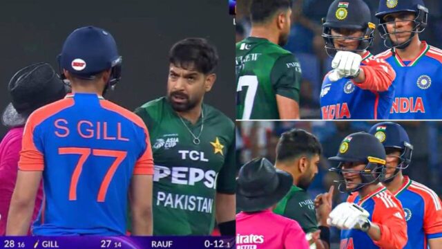 रऊफ़ की गेंद पर गिल ने जड़ा चौका, अभिषेक शर्मा से हुई बहस