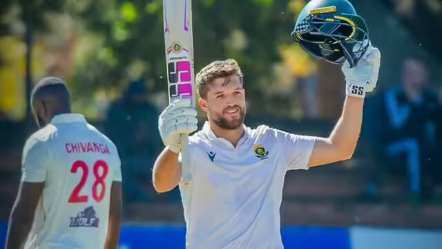 दक्षिण अफ्रीका के बल्लेबाज वियान मुल्डर ने जिम्बाब्वे के खिलाफ दूसरे टेस्ट मैच के दूसरे दिन टेस्ट इतिहास का दूसरा सबसे तेज तिहरा शतक जड़ा। मुल्डर ने जिम्बाब्वे के खिलाफ शानदार बल्लेबाजी की। मुल्डर इस मैच में टीम की कप्तानी कर रहे हैं और तिहरा शतक जड़ने वाले पहले दक्षिण अफ्रीकी कप्तान हैं। मुल्डर ने 297 गेंदों में अपना तिहरा शतक पूरा किया। मुल्डर 334 गेंदों पर 49 चौकों और चार छक्कों की मदद से 367 रन बनाकर नाबाद रहे, जिससे दक्षिण अफ्रीका ने अपनी पहली पारी पांच विकेट पर 626 रन बनाकर घोषित की। मुल्डर के अलावा दक्षिण अफ्रीका के लिए डेविड बेडिंघम ने 82, लुहान ड्रे प्रीटोरियस ने 78, डेवाल्ड ब्रूइस ने 30, टोनी डि जियोर्जी ने 10 और लेसेगो सेनोवेन ने 3 रन बनाए, जबकि काइल वॉर्न 42 रन बनाकर नाबाद लौटे। अमला ने की बराबरी मुल्डर से तेज तिहरा शतक जड़ने का रिकॉर्ड सिर्फ पूर्व भारतीय बल्लेबाज वीरेंद्र सहवाग के नाम है। सहवाग ने 2008 में चेन्नई में दक्षिण अफ्रीका के खिलाफ 278 गेंदों पर तिहरा शतक बनाया था। मुलडर टेस्ट में तिहरा शतक बनाने वाले दूसरे दक्षिण अफ्रीकी बल्लेबाज हैं। उनसे पहले हाशिम अमला ने 2012 में इंग्लैंड के खिलाफ नाबाद 311 रन बनाकर ऐसा किया था। अगले दिन मुलडर ने 264 रन से खेलना शुरू किया और बिना ज्यादा देर किए अपना तिहरा शतक पूरा कर लिया।